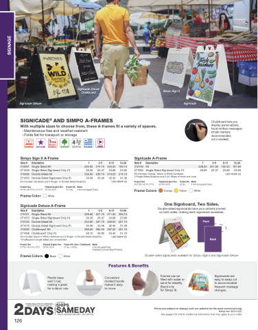 Kit Includes: Black or White Hardware and 2 Single- or Double-Sided Graphics *Chalkboard is single-sided and unimprinted