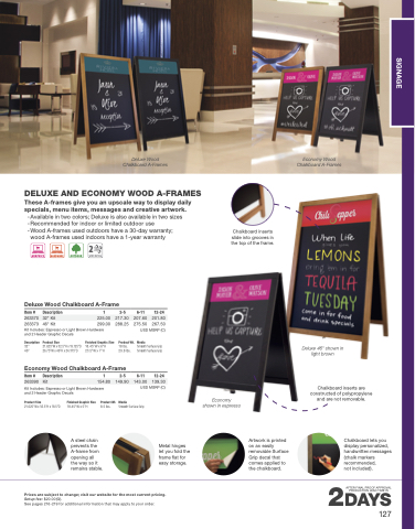 These A-frames give you an upscale way to display daily specials, menu items, messages and creative artwork.