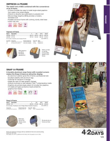 A durable aluminum snap frame with rounded corners makes the Snap A-frame an attractive display.