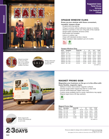 - Clings to window without adhesive; leaves no residue - Artwork is printed on the non-cling side of the material - Single-sided; backside will show white