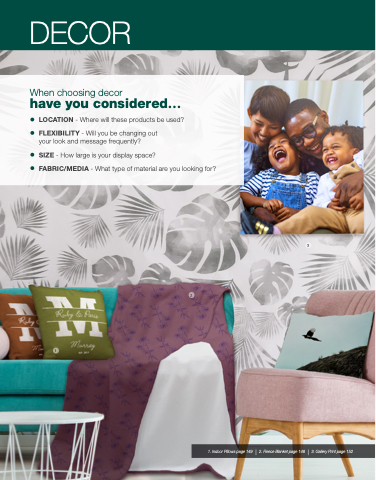 1. Indoor Pillows page 149 | 2. Fleece Blanket page 148 | 3. Gallery Print page 152