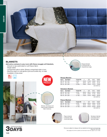 - Unimprinted side is white; Sherpa unimprinted side is ivory - Machine wash on cold gentle cycle and tumble dry, no heat - Available in three sizes