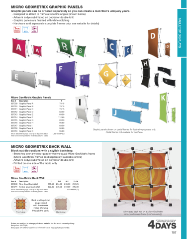 Micro GeoMetrix pegs hold up to 3 panels each. View online templates for finished graphic sizes.