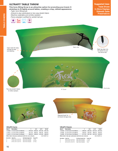 This form-fitting throw is an attractive option for promoting your brand. It stretches to fit tightly around tables, creating a crisp, refined appearance.