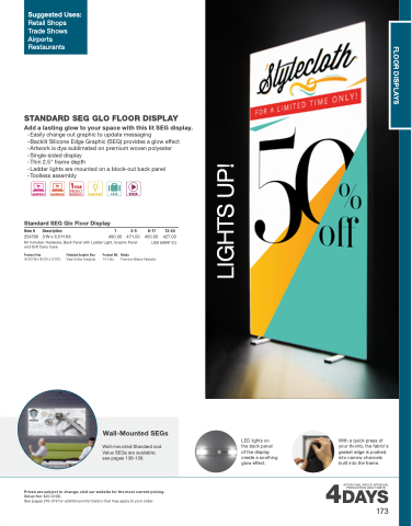 - Backlit Silicone Edge Graphic (SEG) provides a glow effect - Artwork is dye sublimated on premium woven polyester