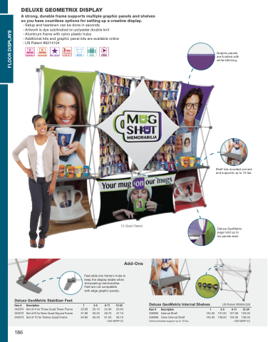 A strong, durable frame supports multiple graphic panels and shelves so you have countless options for setting up a creative display.