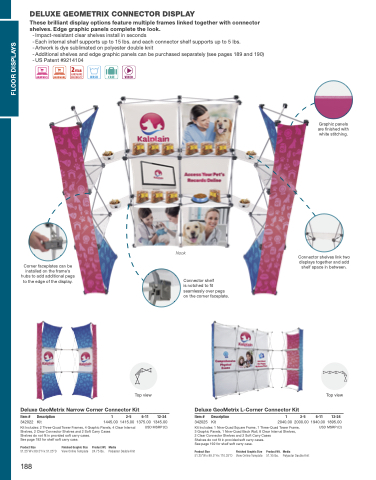 - Additional shelves and edge graphic panels can be purchased separately (see pages 189 and 190) - US Patent #9214104