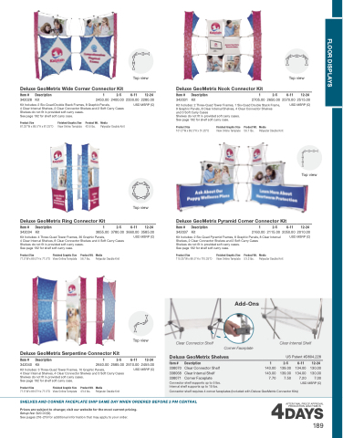 Kit Includes: 2 Three-Quad Tower Frames, 1 Six-Quad Double Stack Frame, USD MSRP (C) 9 Graphic Panels, 8 Clear Internal Shelves, 4 Clear Connector Shelves