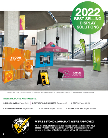 All of the products featured in this catalog have been tested and have passed Proposition 65 standards. Every one of these products can be sold in the state of California without a Prop 65 warning label.