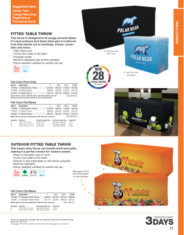 This throw is designed to fit snugly around tables. It's taut surfaces and sharp lines give it a tailored look that stands out at meetings, shows, career fairs and more.