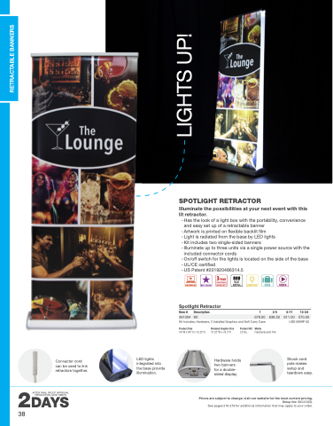- Has the look of a light box with the portability, convenience and easy set up of a retractable banner