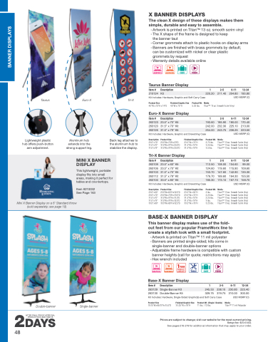 Mini X Banner Display on a 6' Standard throw (sold separately; see page 10)