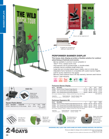 263295 18 oz. Opaque Scrim Vinyl Single-Sided Expansion Kit 629.00 Kit Includes: Hardware, Graphic, 4 Stakes and Soft Carry Case with Wheels
