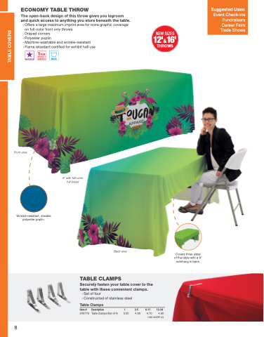 Securely fasten your table cover to the table with these convenient clamps.