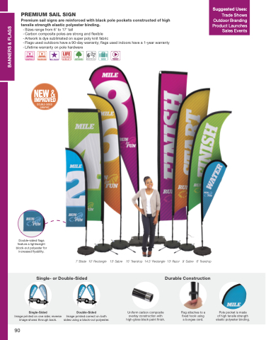 Premium sail signs are reinforced with black pole pockets constructed of high tensile strength elastic polyester binding.