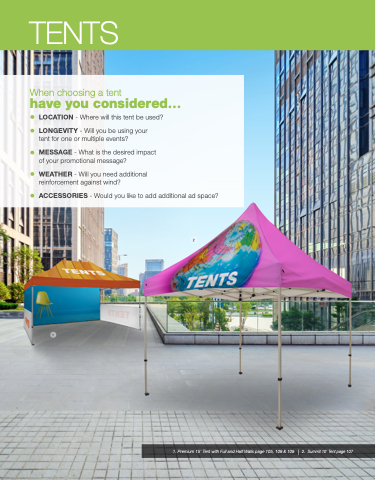 1. Premium 15' Tent with Full and Half Walls page 105, 108 & 109 | 2. Summit 10' Tent page 107